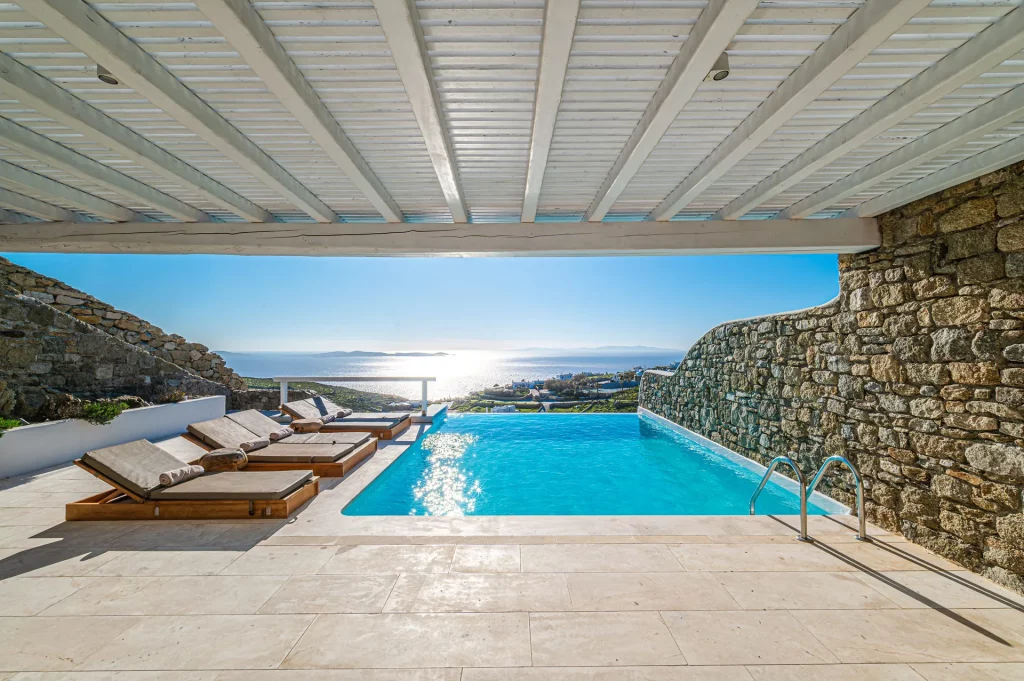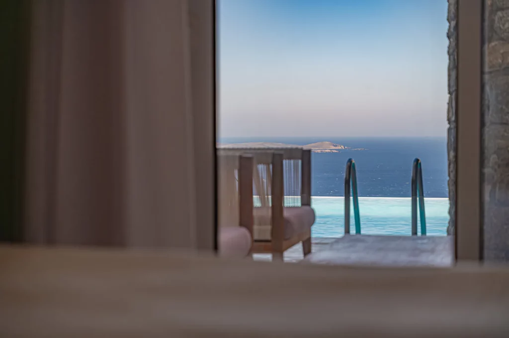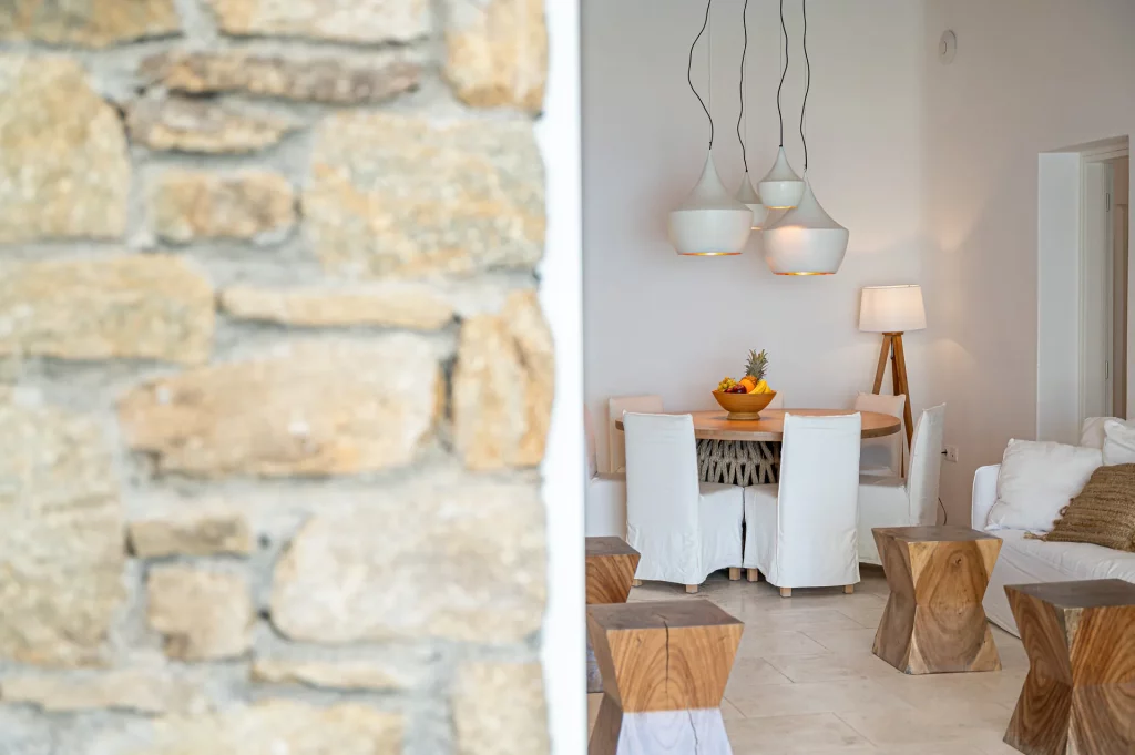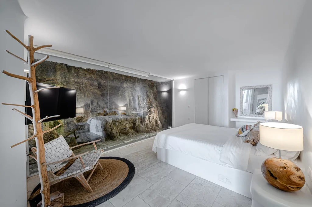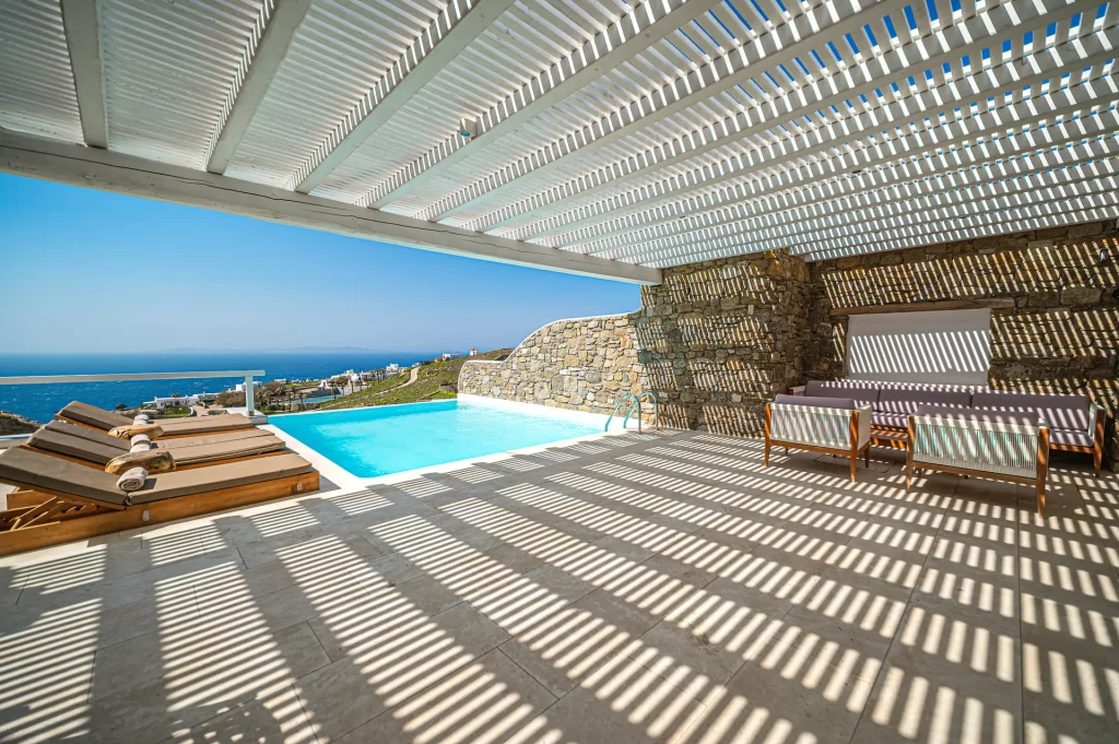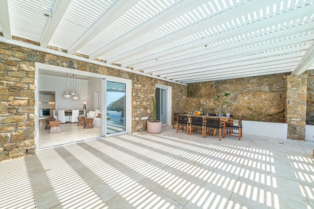 At the heart of the property is a 30 sq.m. private infinity pool, designed to capture the sunset in all its glory. Surrounded by a natural rocky landscape, the villa’s outdoor spaces boast shaded pergolas, a BBQ, and multiple lounging and dining areas that make every moment outdoors an invitation to unwind and connect with the view.