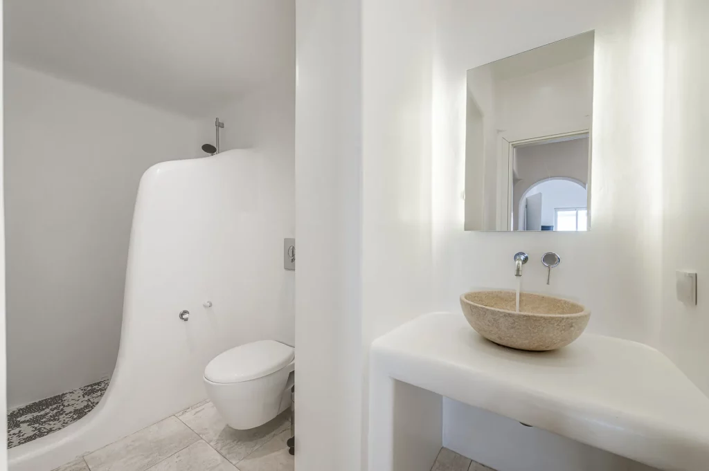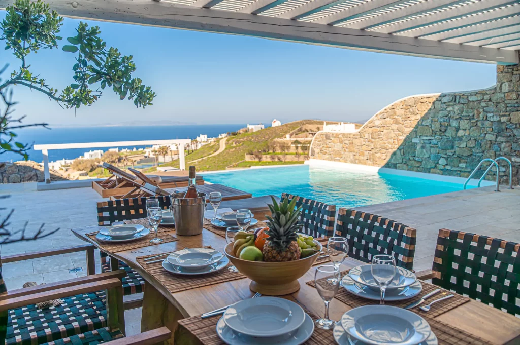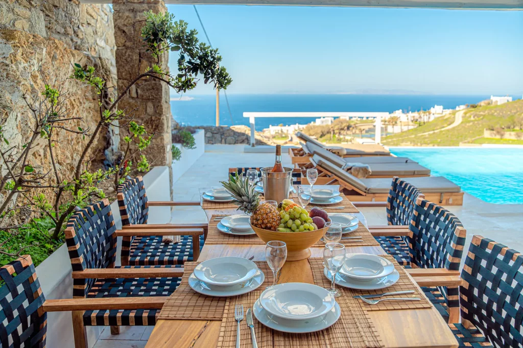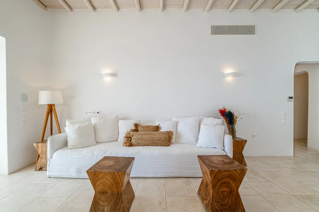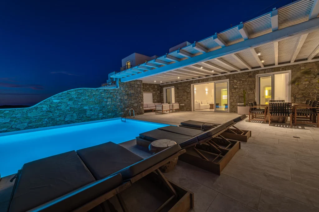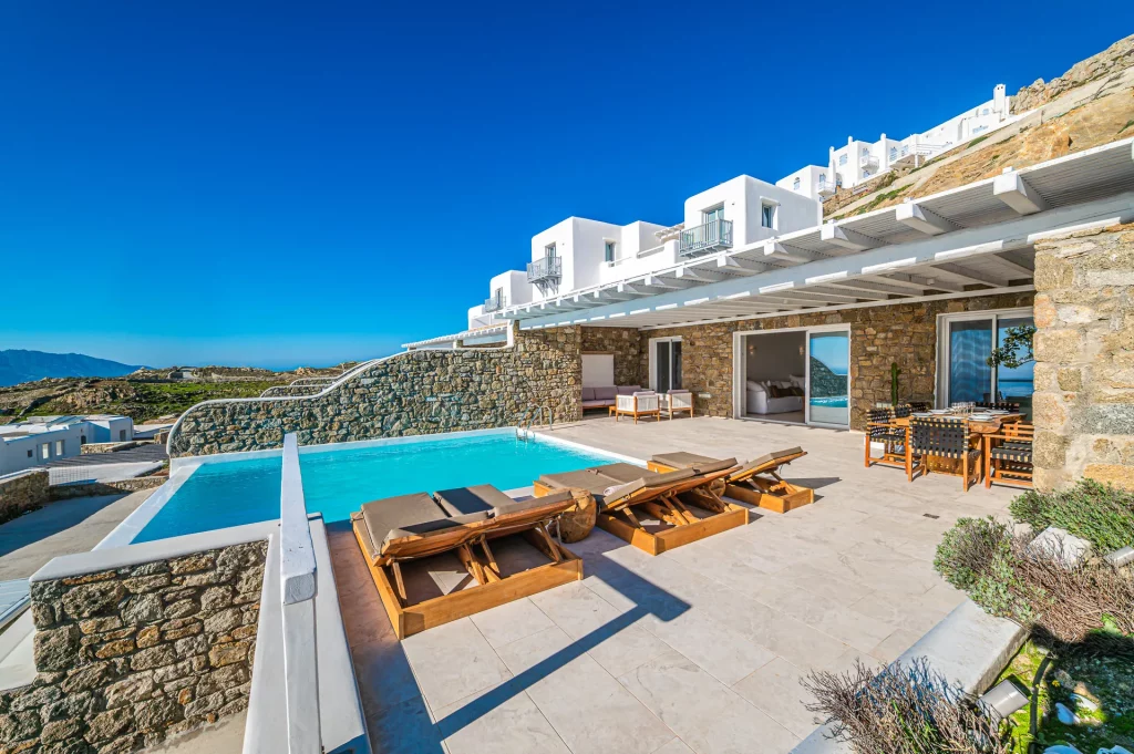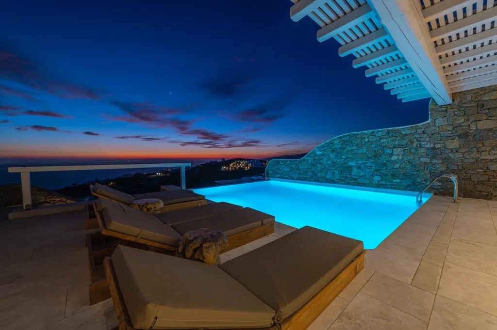 At the heart of the property is a 30 sq.m. private infinity pool, designed to capture the sunset in all its glory. Surrounded by a natural rocky landscape, the villa’s outdoor spaces boast shaded pergolas, a BBQ, and multiple lounging and dining areas that make every moment outdoors an invitation to unwind and connect with the view.