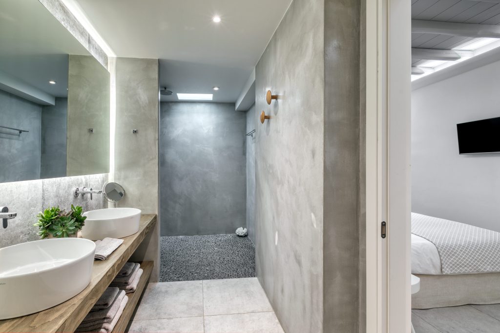 Saporé Villa in Mykonos offers 159m² of stylish living, ideal for up to 8 guests. The ground floor features 2 double bedrooms with en-suite bathrooms, while the entrance level includes a spacious living area, open-plan kitchen, and a guest toilet. Upstairs, 2 master bedrooms share a bathroom. Outside, enjoy the private hot tub, dining, and lounge areas, perfect for relaxation or entertaining. Combining comfort and modern elegance, Saporé Villa ensures a memorable Mykonian escape in a serene setting.