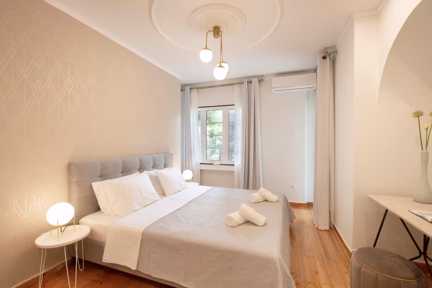 Every detail has been carefully curated, from original mosaics and vintage flooring to handpicked furniture and premium art. Each bedroom features a distinctive color palette and is fitted with Coco-Mat king-size mattresses, ensuring restful sleep in a serene environment.