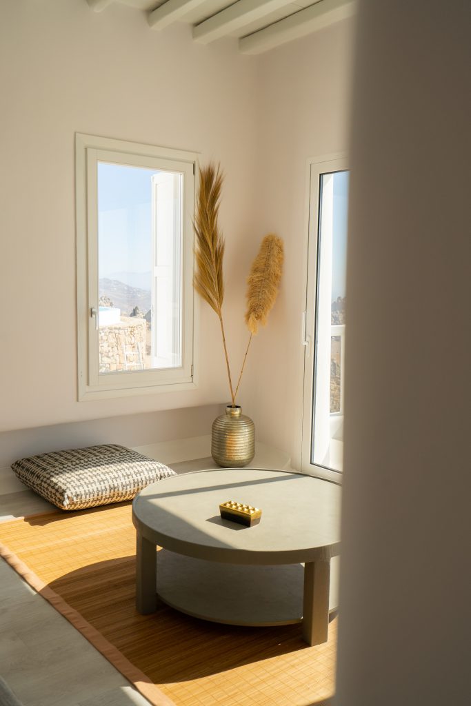 The property is located in Mykonos and is based at the highest point of the island with a magnificent view.
