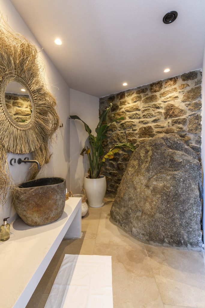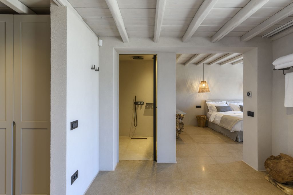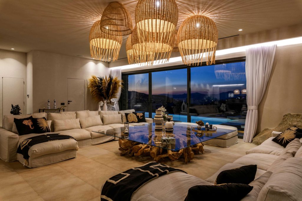 The villa boasts not one, but two private pools set on separate terraces, each a mirror to the stunning Mykonian skies. Within, the seamless glass facades invite the outside in, ensuring the scenic views are your constant backdrop. Equipped for grandeur, it is a fortress of solitude, complete with a kitchen ready to cater to 24 guests.
