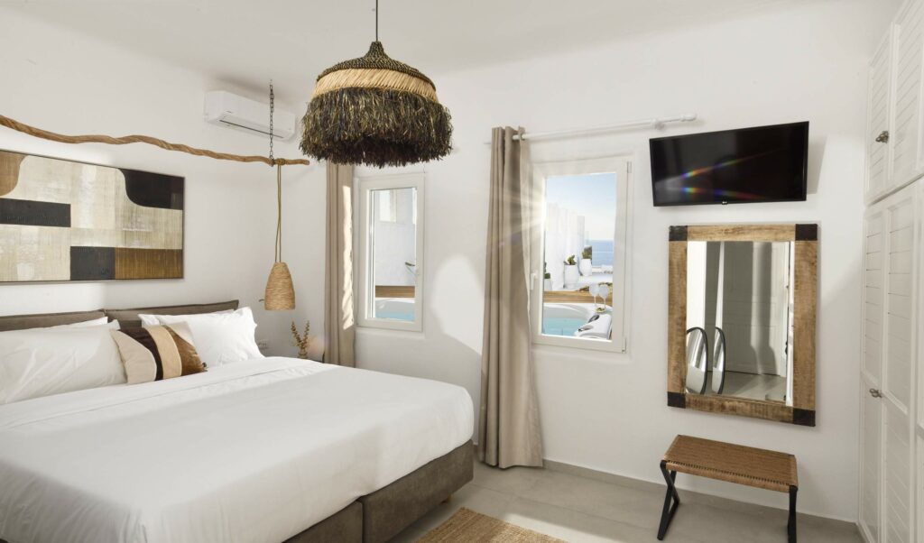 Guests will enjoy walking-distance access to two quiet beaches, full privacy, and easy reach to Mykonos Town and Ornos Beach.