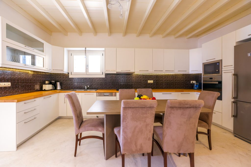 Designed for comfort and style, Villa Antheia accommodates up to 14 guests in six opulent bedrooms with en-suite bathrooms. Inside, the villa is bathed in natural light, featuring minimalist decor in soft earth tones that harmonize with the surroundings. The open-plan living and dining spaces exude elegance, while the fully equipped kitchen is ready to cater to all your culinary needs.