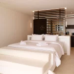 Nestled in the serene landscape of Kounoupas, Villa Bella offers an intimate and luxurious retreat for those seeking tranquility and indulgence. This elegant 34-square-meter suite is designed with contemporary sophistication, seamlessly blending modern comforts with breathtaking views of the Aegean Sea.