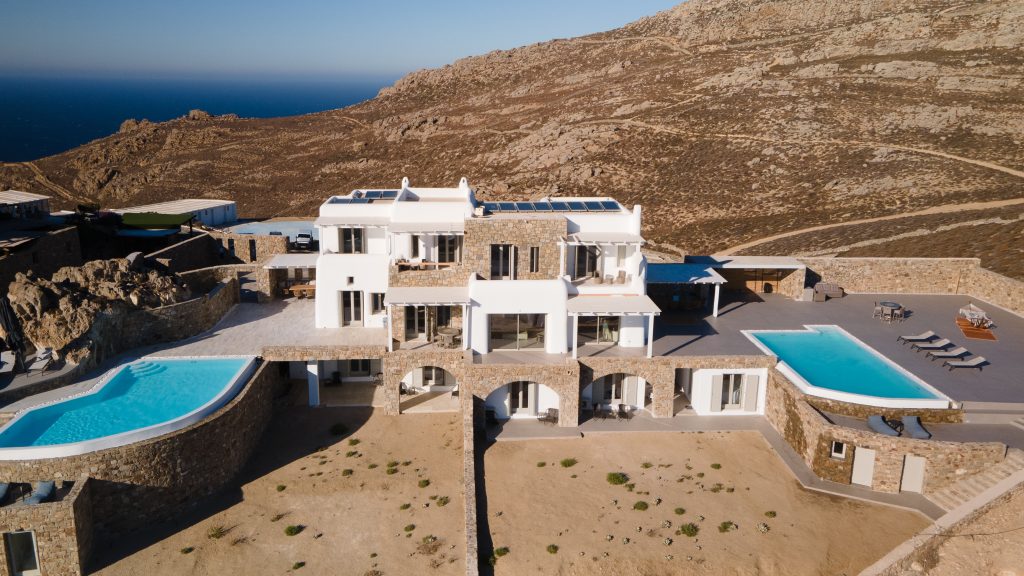 Elevated 8-Bedroom Mykonos Villa with Panoramic Sea Views and Expansive Outdoor Pool Terrace