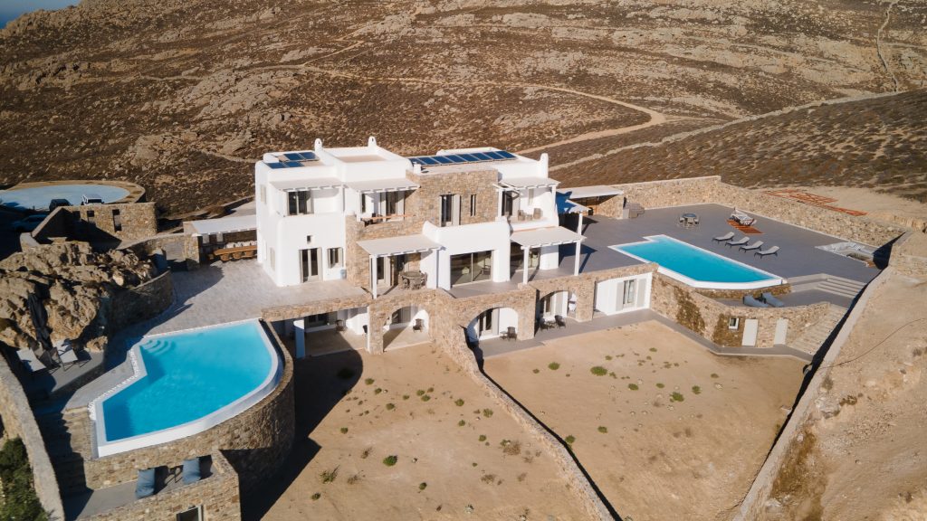 The property is located in Mykonos and is based at the highest point of the island with a magnificent view. This luxury villa offers an outdoor area of 450m2 with a private pool and an astonishing view of the sea.