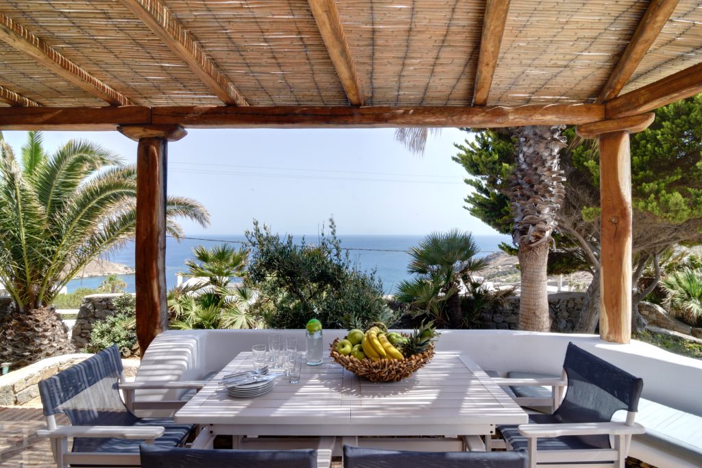 The luxurious 225 sq meters 4-bedroom/5 bathroom villa, is a unique and luxury property that stands on a sublime location in the south-west of the island in the area of Aleomandra just 60 meters from the seafront with magnificent views of the infinite blue of the Aegean Sea that expands as far as the eye can see, towards the neighboring Cycladic islands of Naxos and Paros as well as the captivating sunsets of Mykonos.