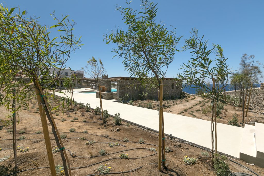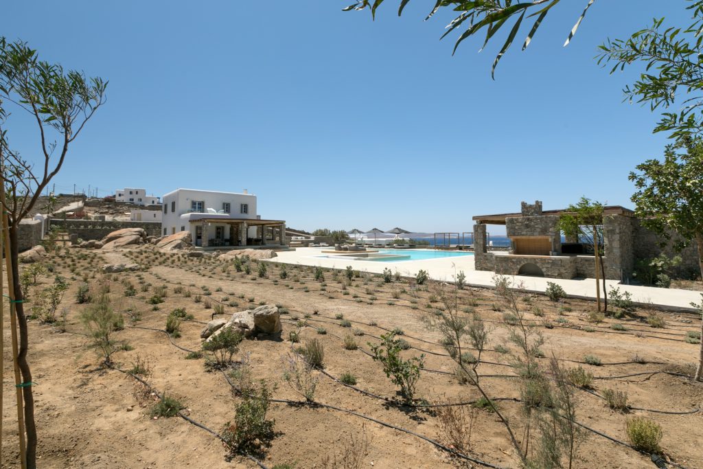 Elegant Mykonos Retreat with Beach-Entry Pool, Gym, and Lush Mediterranean Gardens