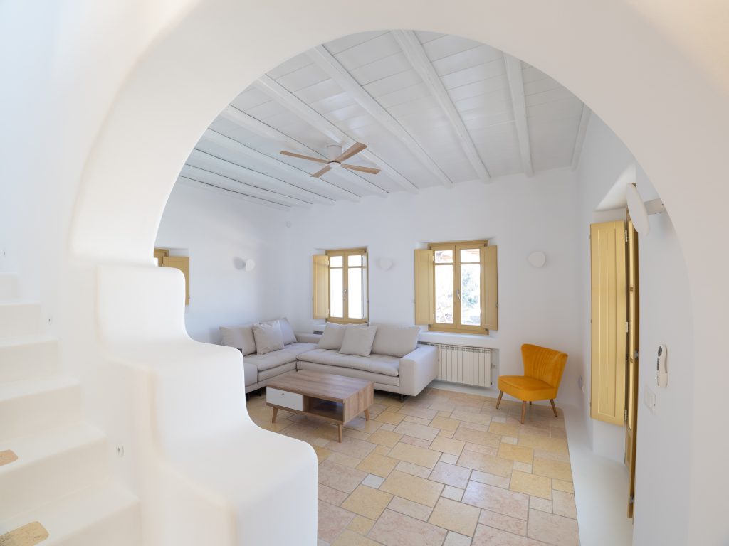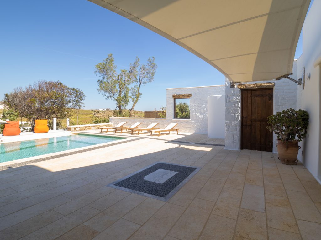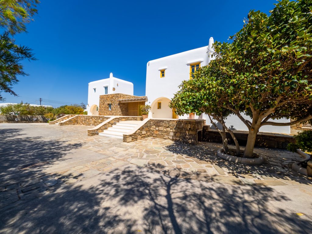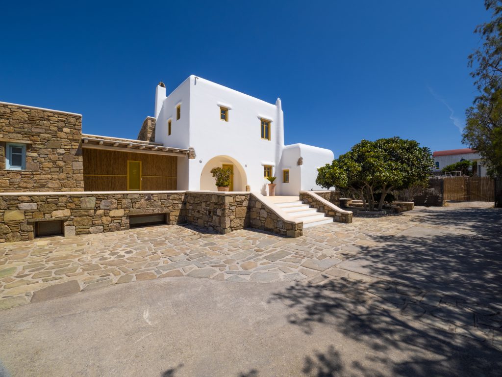 Step outside to a private oasis, where a sparkling swimming pool awaits, surrounded by a spacious terrace and an alfresco dining area—perfect for savoring the Mykonian sun and breathtaking island ambiance. The villa also offers a lush garden and private parking, providing convenience and exclusivity.