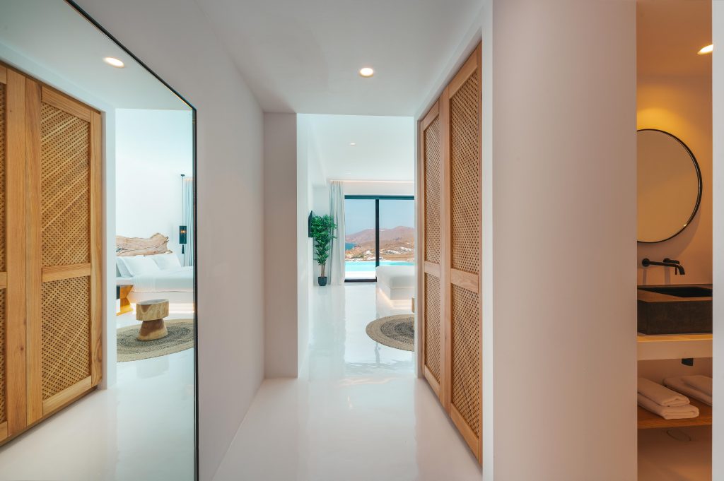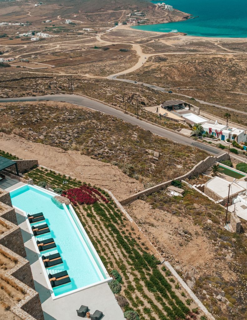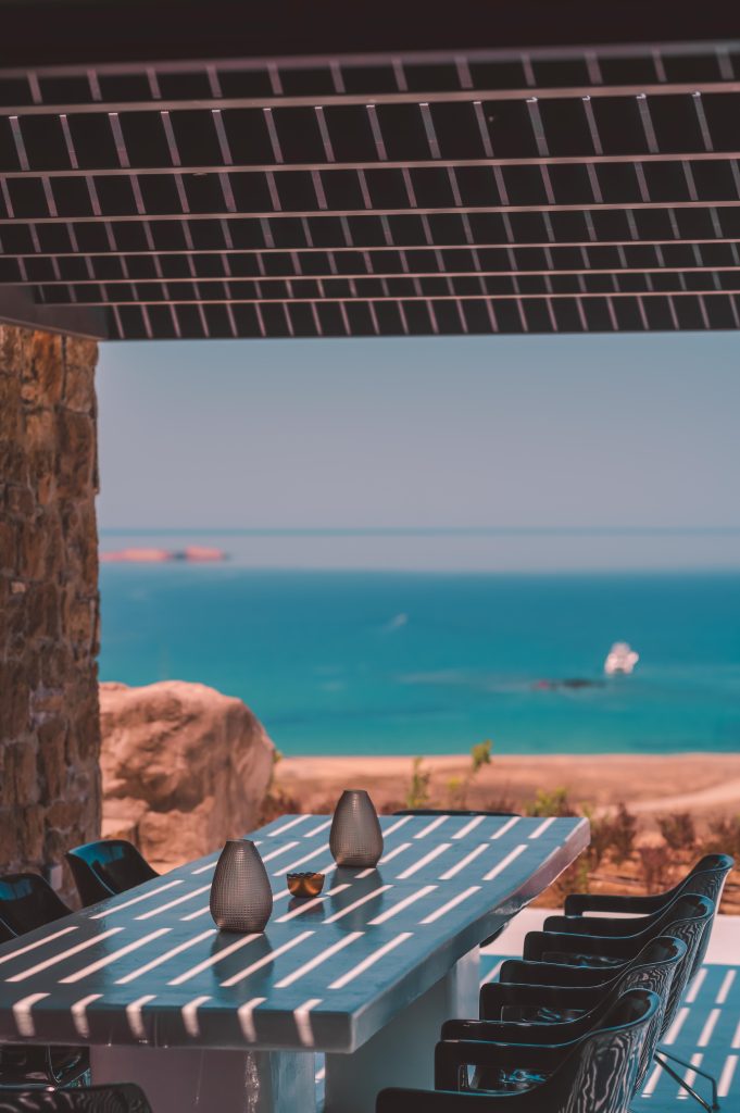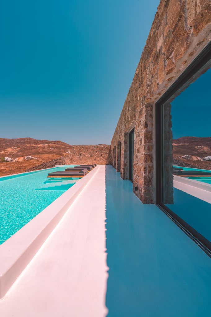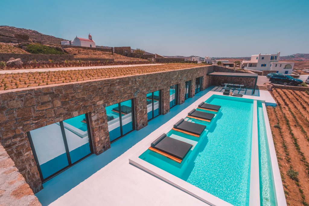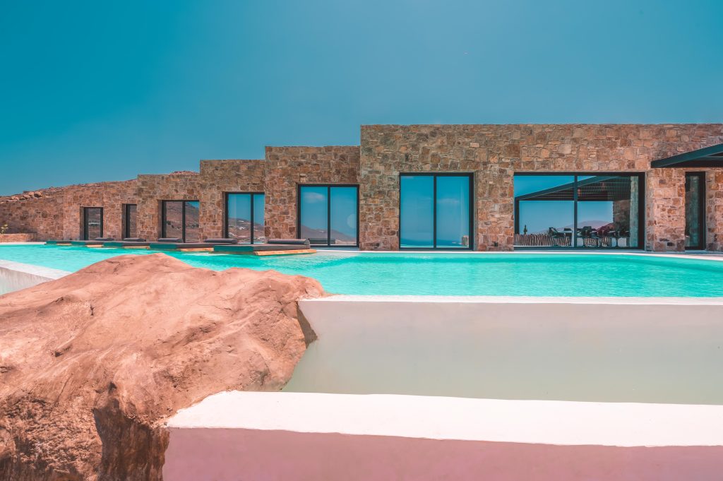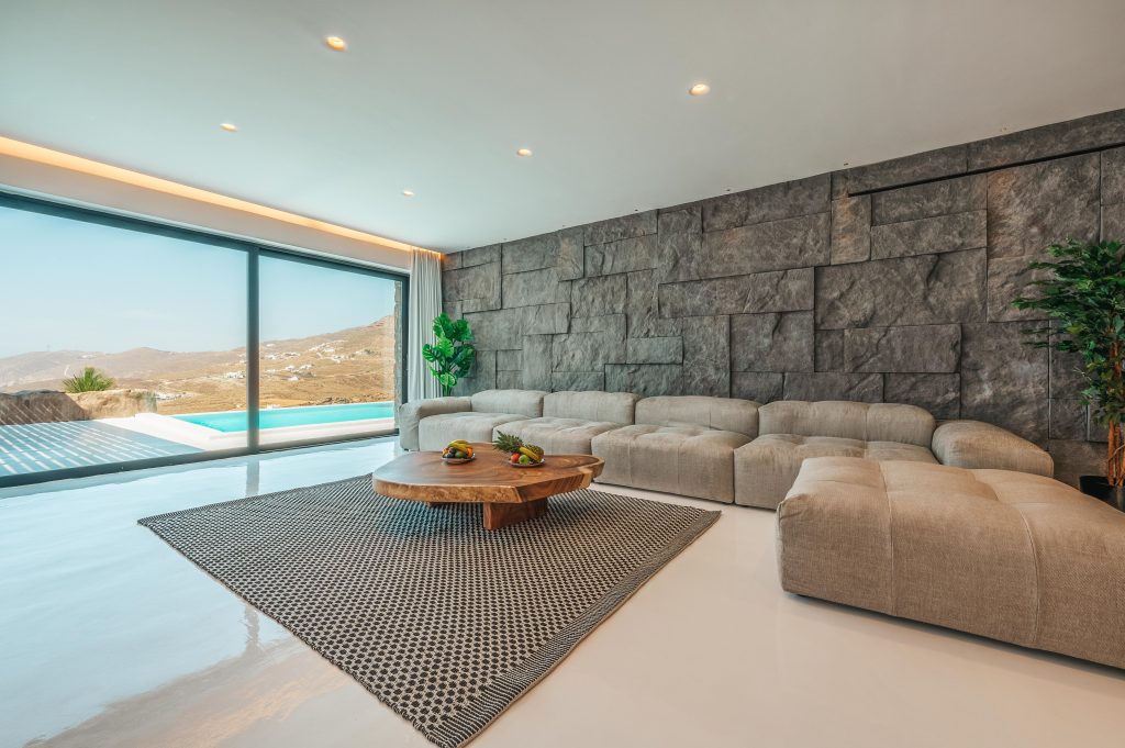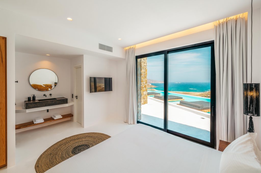 Discover Villa Harmonium, a stunning retreat located just 5 kilometers from the vibrant Mykonos Town. Perched on the edge of the Aegean Sea, this architectural marvel blends modernist design with Cycladic charm, offering breathtaking views of the sea and iconic sunsets.