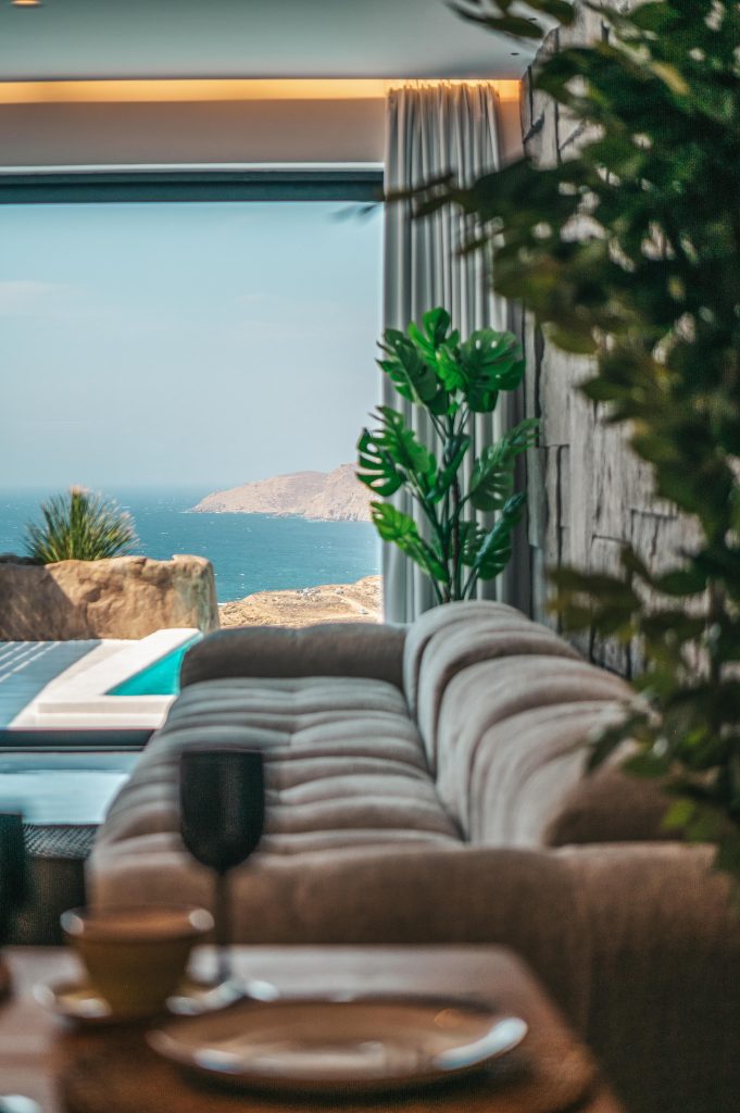 Architectural Seafront Villa with Sunset Views Near Mykonos Town