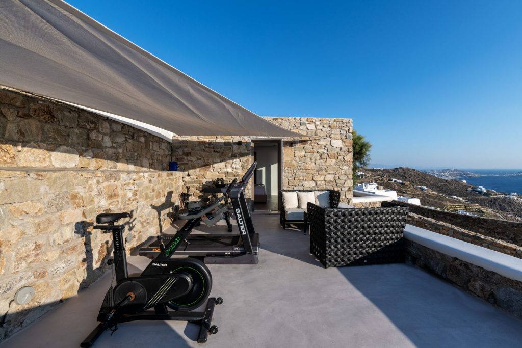 The interior is adorned with chic, contemporary design, while outside, the expansive terrace, infinity pool, and Jacuzzi offer serene havens for relaxation, set against the mesmerizing panorama of the Aegean Sea. Advanced amenities, from a gourmet-ready kitchen to comprehensive security, ensure every need is catered to.