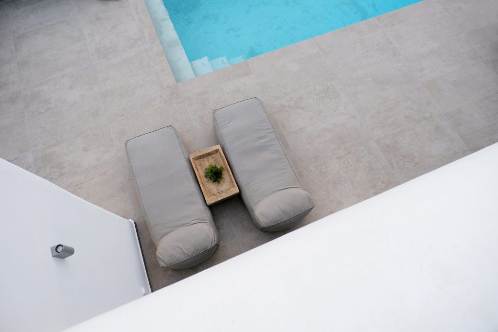 The unique lounge area around the pool is well-equipped with modern sunbeds and a stylish daybed, providing the ideal setting for both relaxation and intimate gatherings.