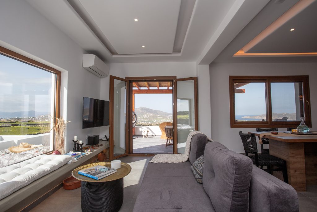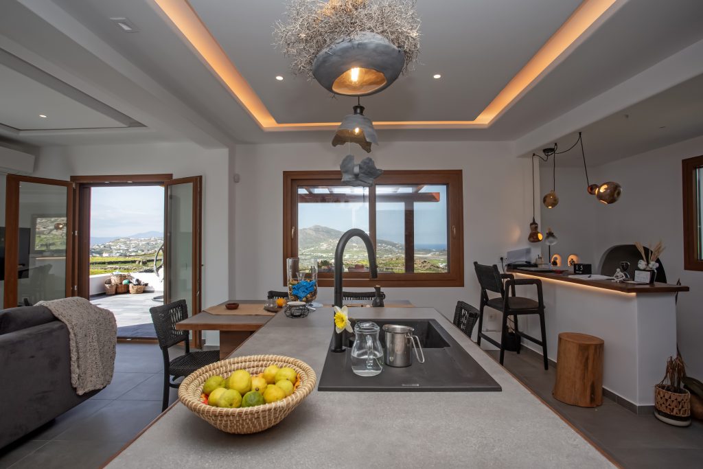 Perched on a serene hillside in Klouvas, just 3 km from the heart of Mykonos Town, Ktima Lirio is a 175 sq.m. villa offering a rare blend of traditional Mykonian charm and modern eco-luxury. With sweeping views over Delos, Tinos, and Syros, this villa is a true sanctuary for those seeking peace, privacy, and a meaningful connection to nature.
