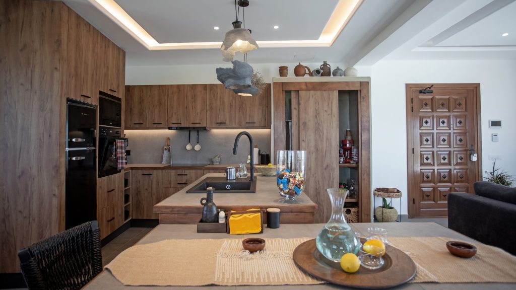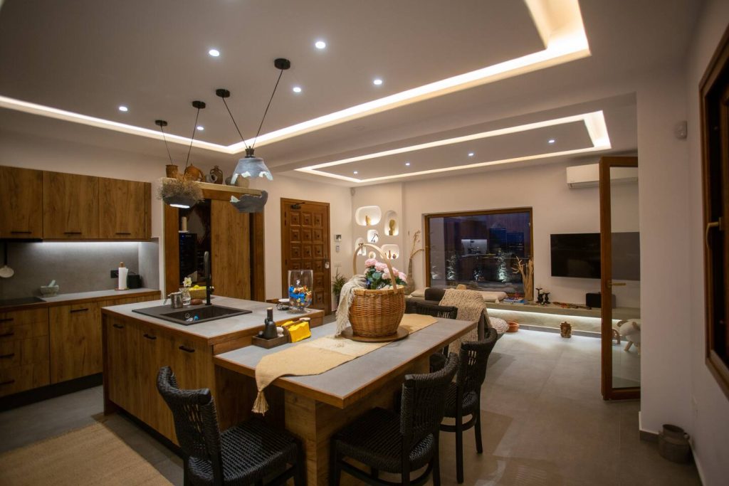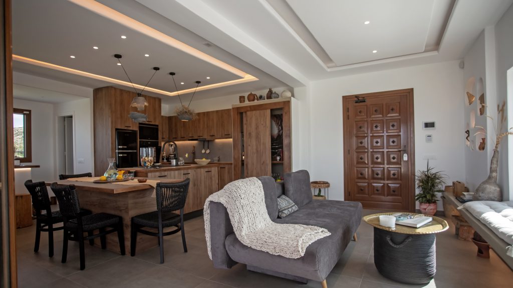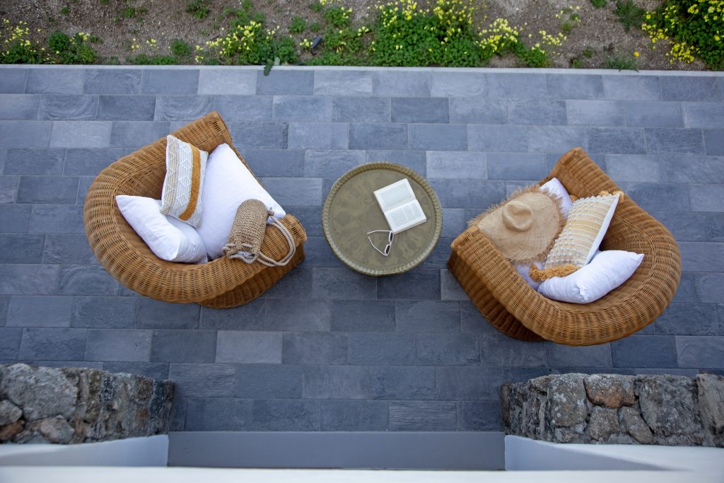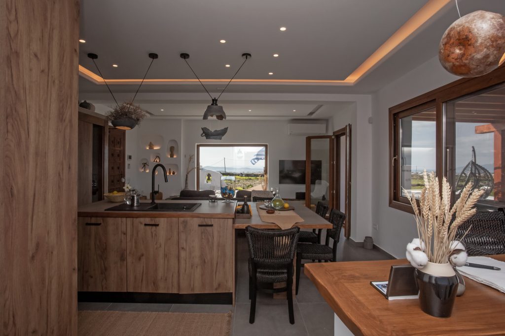 Crafted from natural materials like stone and wood, and decorated with thoughtful nods to local culture, Ktima Lirio is more than a home—it’s an experience. Enjoy unobstructed sea views from shaded terraces, dine outdoors with ingredients from your own garden, relax in the Jacuzzi, and cool off in the private pool while the scents of Mediterranean herbs fill the air.