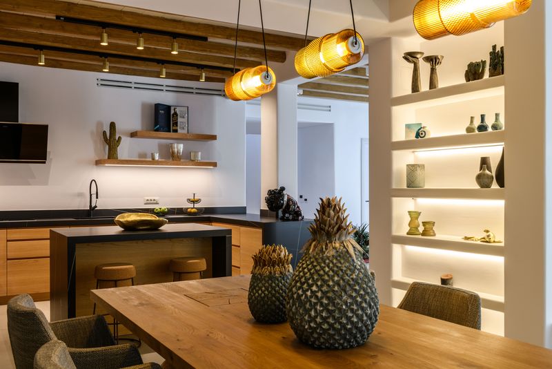 Crafted with top-quality materials and impeccable attention to detail, the villa blends modern architecture with high-end amenities—from private pools and Jacuzzis to designer interiors and floating sunbeds. The living and dining areas are connected by seamless indoor-outdoor flow, opening onto sun-kissed terraces and elegant lounges where guests can unwind, dine al fresco, or soak in panoramic views of the Aegean sunset.