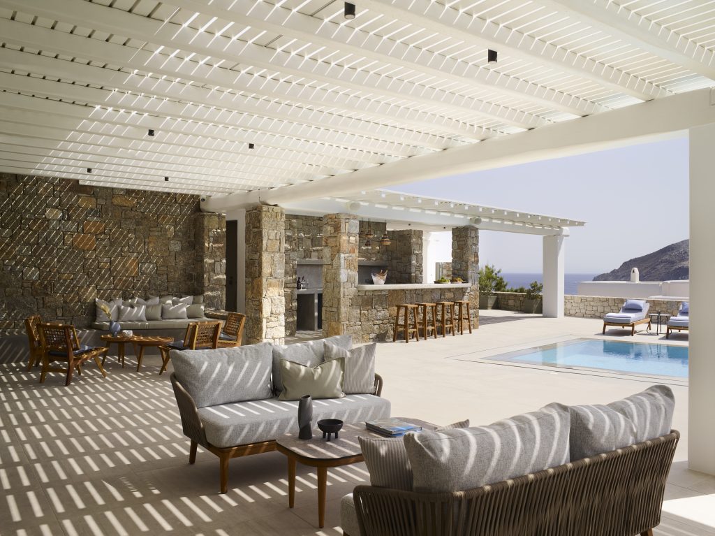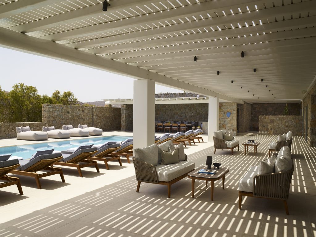 Expansive outdoor terraces and shaded lounge areas