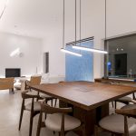 The main house, with its minimalistic decor, features a spacious open-plan living area, a fully equipped kitchen, and an elegant dining space. The master suite includes a walk-in closet and direct access to an outdoor lounge. The villa also offers a gym and three independent guest houses, each with a kitchenette and private lounge area for additional privacy.