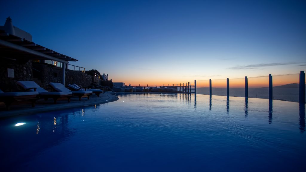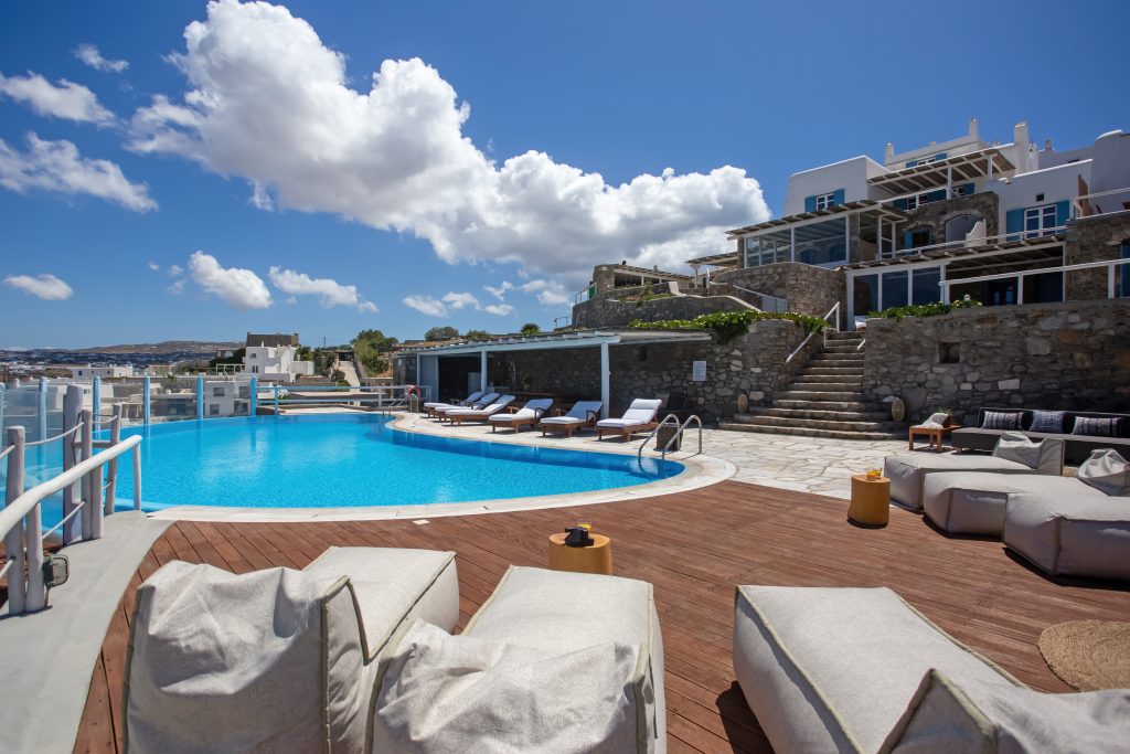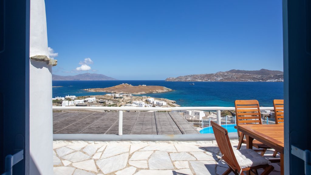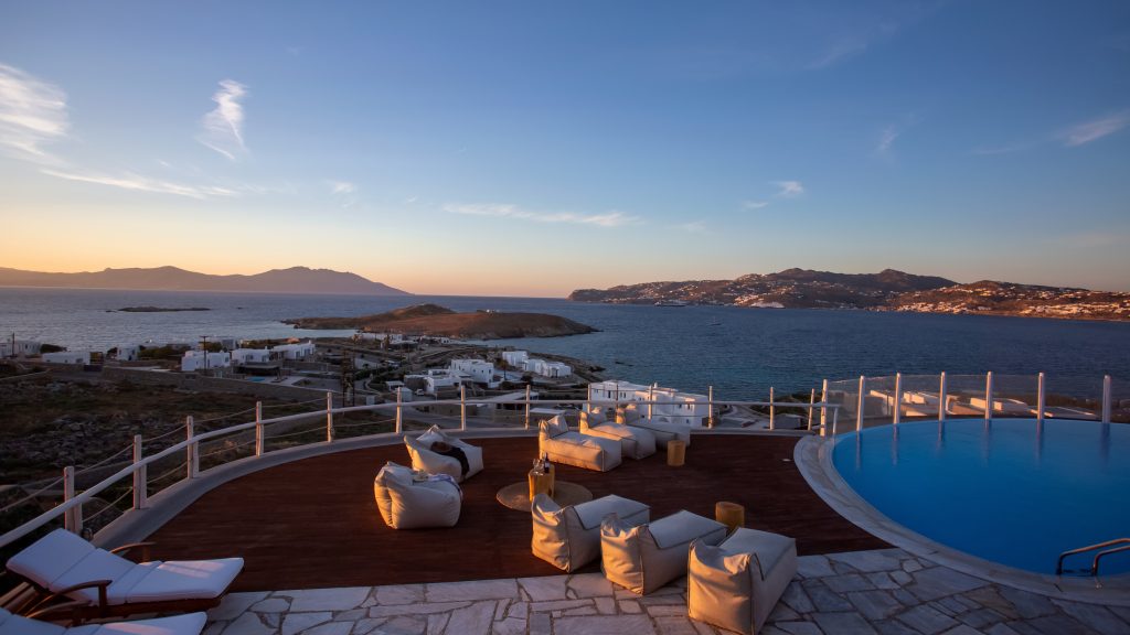 Set on the elevated cove of Kanalia, just minutes from the cosmopolitan Ornos and Mykonos Town, Villa Pavilion 2 is a breathtaking property that fuses traditional Cycladic architecture with modern comfort. Spanning 420 sq.m. and accommodating up to 18 guests, the villa offers panoramic views of Mykonos Town, Delos, Tinos, and Baos islands, from virtually every corner of the property.