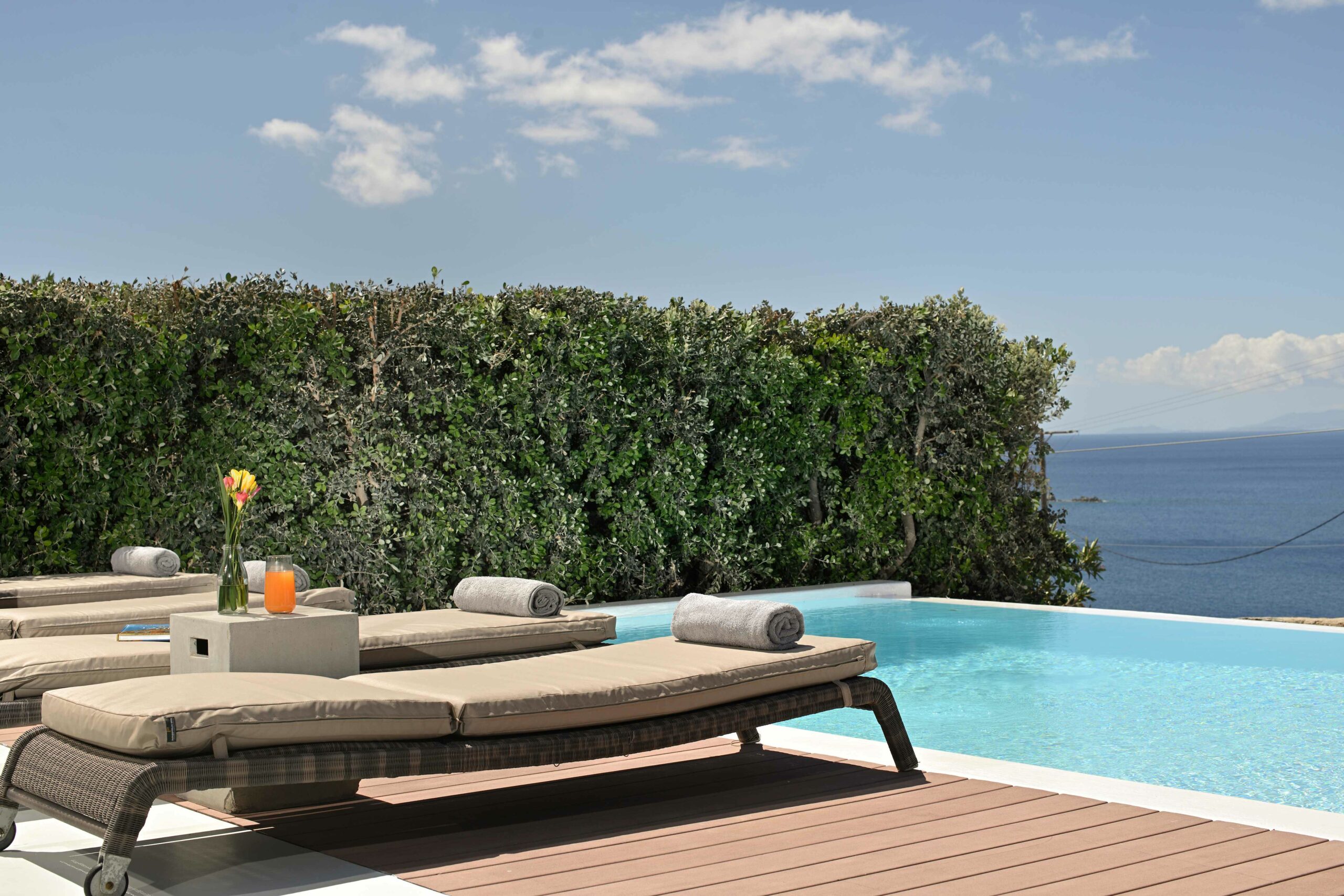 From its unmatched proximity to Mykonos’ trendiest beach clubs (Solymar, Lohan, Spilia, and more), to its home-like ambience and breezy style, Villa Playa is a perfect setting for both serene escapes and social holidays. Concierge services, chef experiences, boat rentals, and wellness services are all available on request to complete the experience.