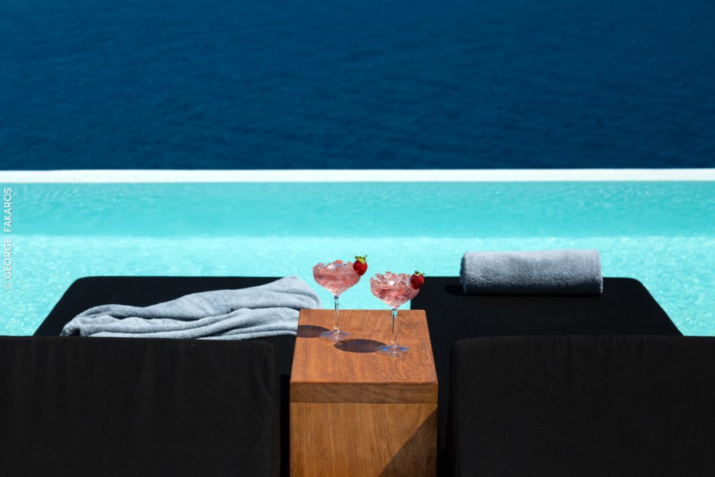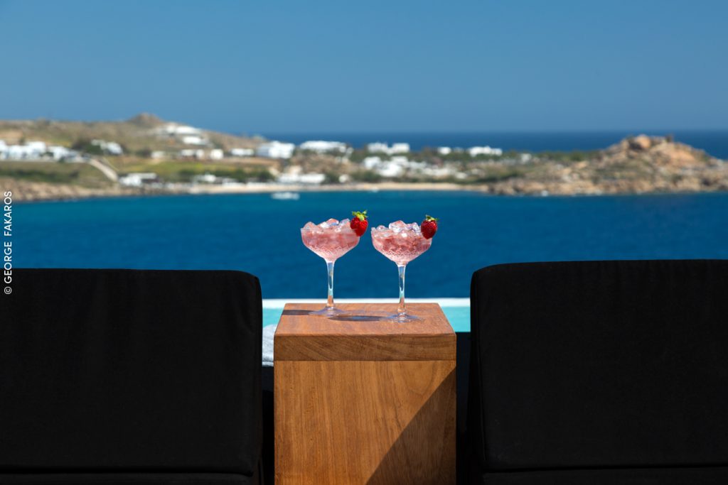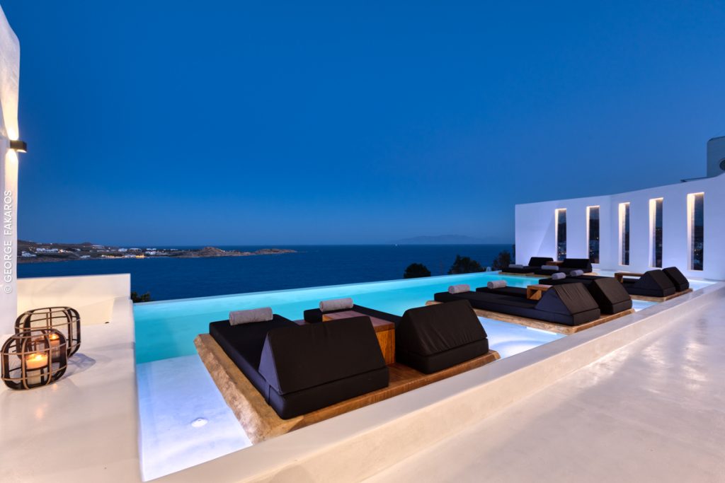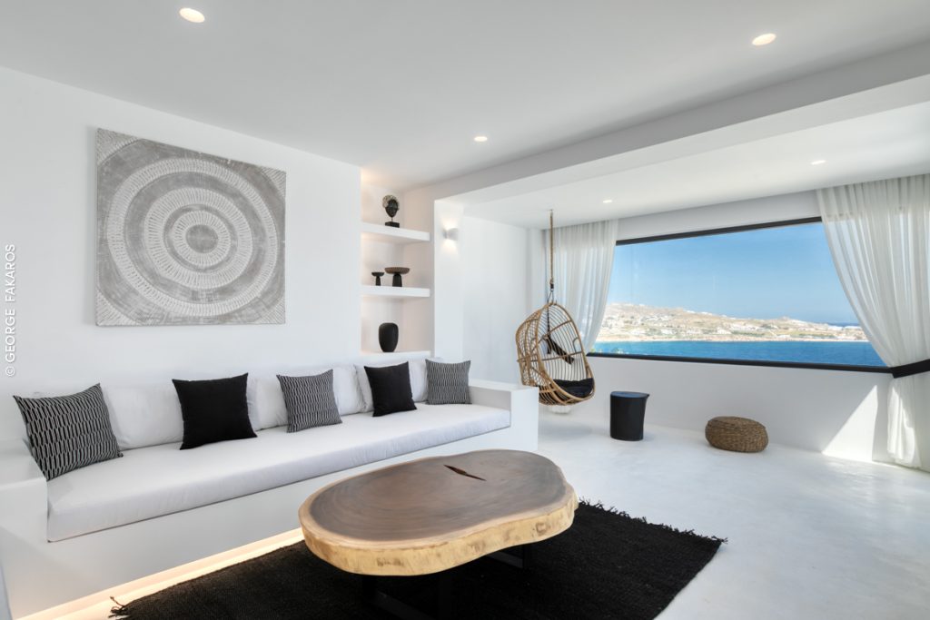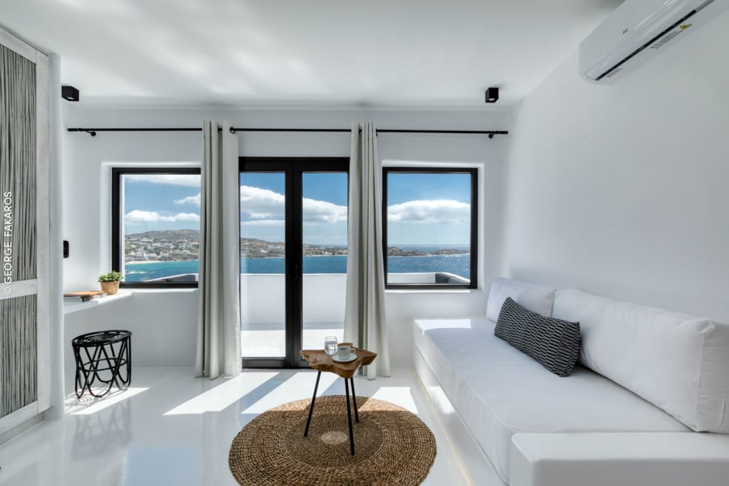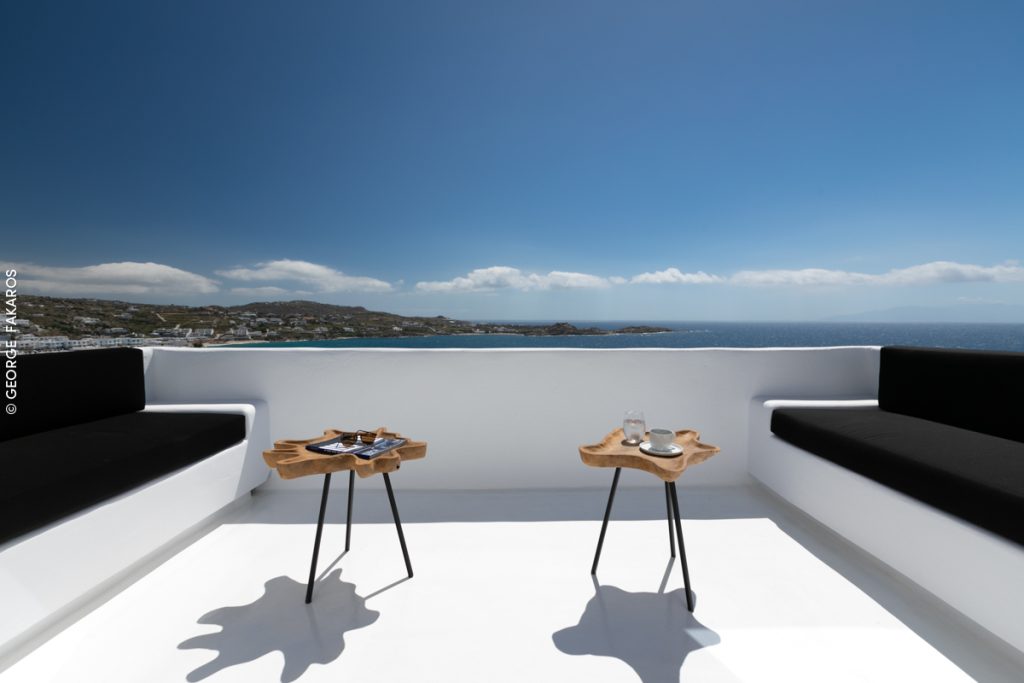 Expansive private terraces with panoramic views over the Aegean Sea