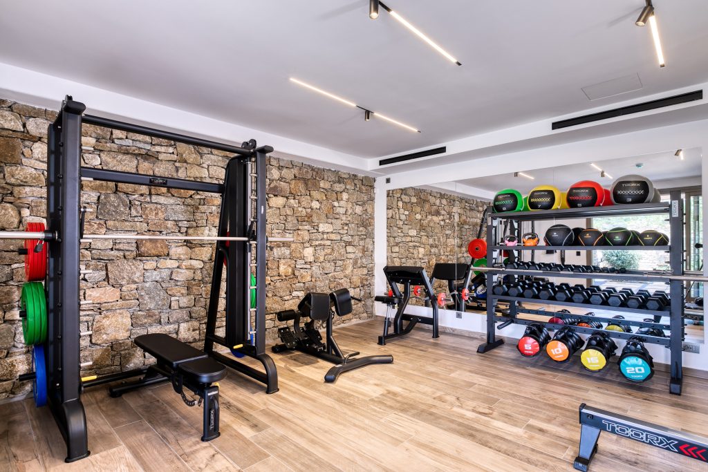 Private gym with indoor and outdoor fitness spaces