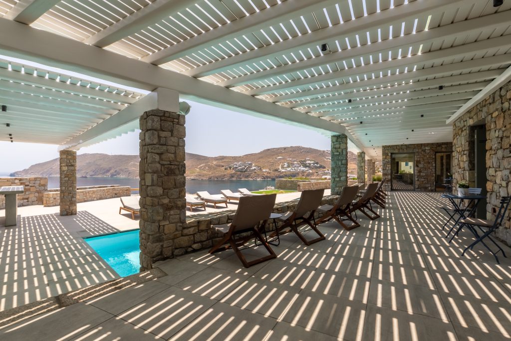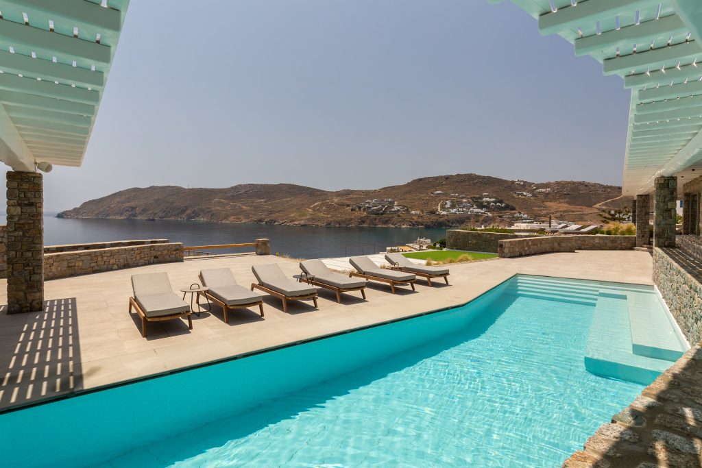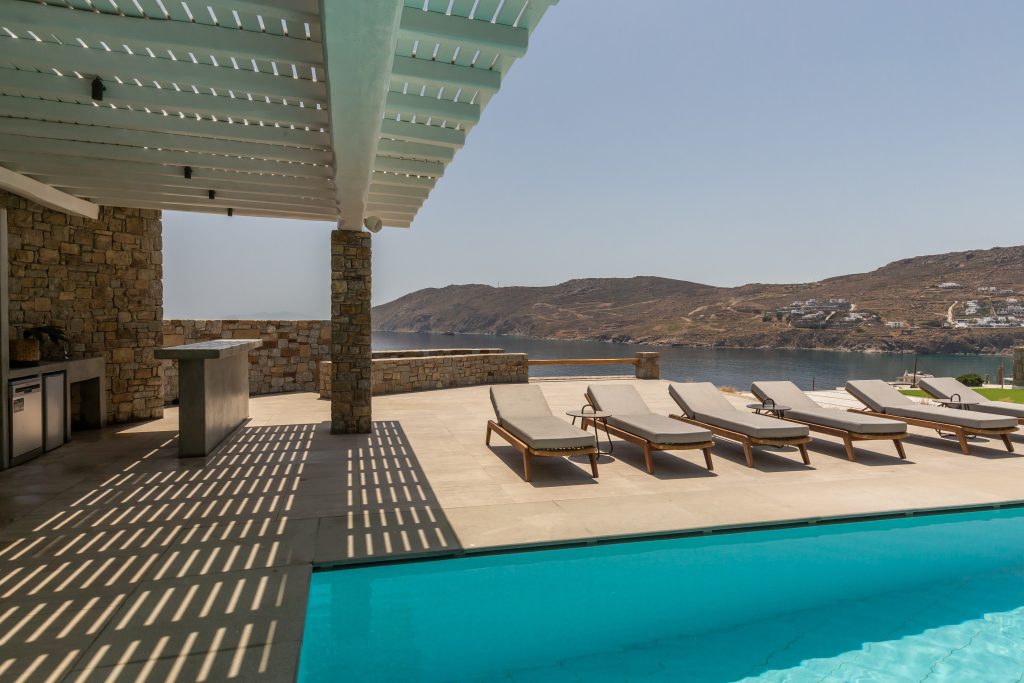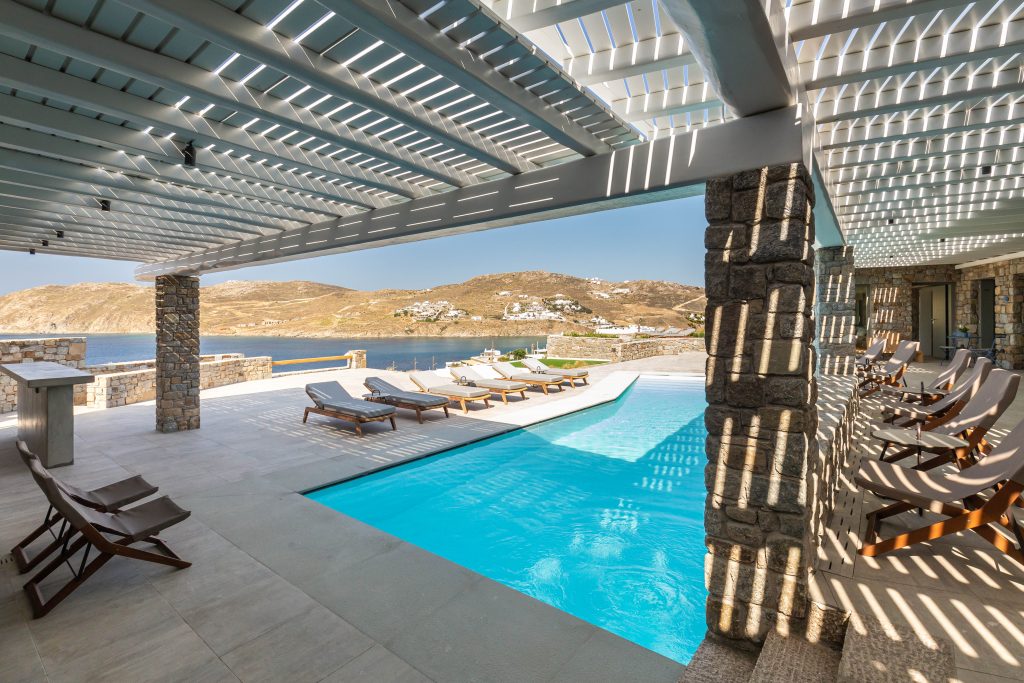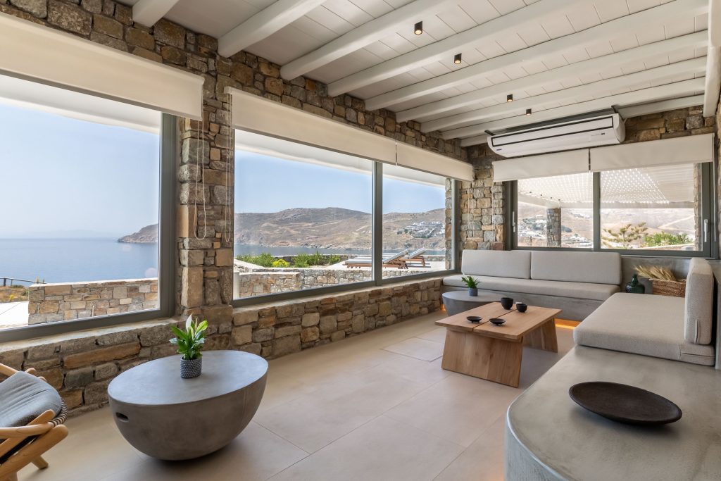 This astonishing Villa is built on top of the sea in walking distance of 1-3 minutes, from the seaside and the most beautiful beaches of Kalo Livadi Mykonos.