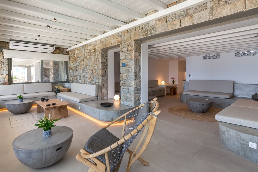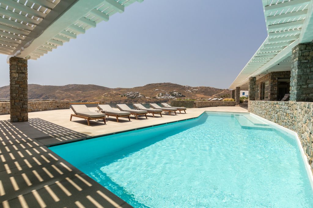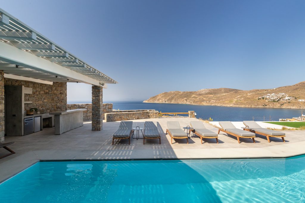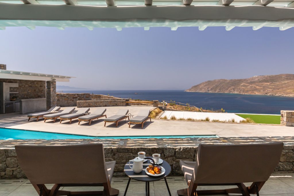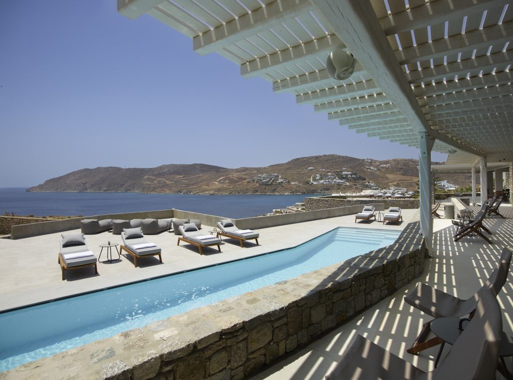 This astonishing Villa is built on top of the sea in walking distance of 1-3 minutes, from the seaside and the most beautiful beaches of Kalo Livadi Mykonos.