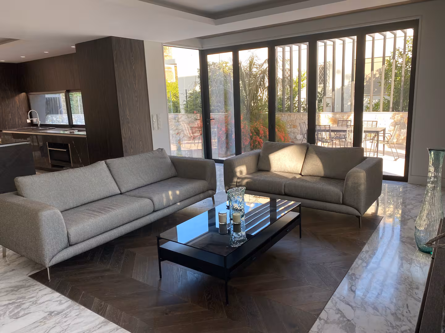 Villa Velluto is a stunning, newly built architectural residence offering luxurious living just a short stroll from the beaches of the Athens Riviera and the charming town of Voula. Spanning 400 m², this fully furnished villa showcases high-end finishes, marble interiors, and sophisticated design, making it an exceptional retreat for discerning guests.