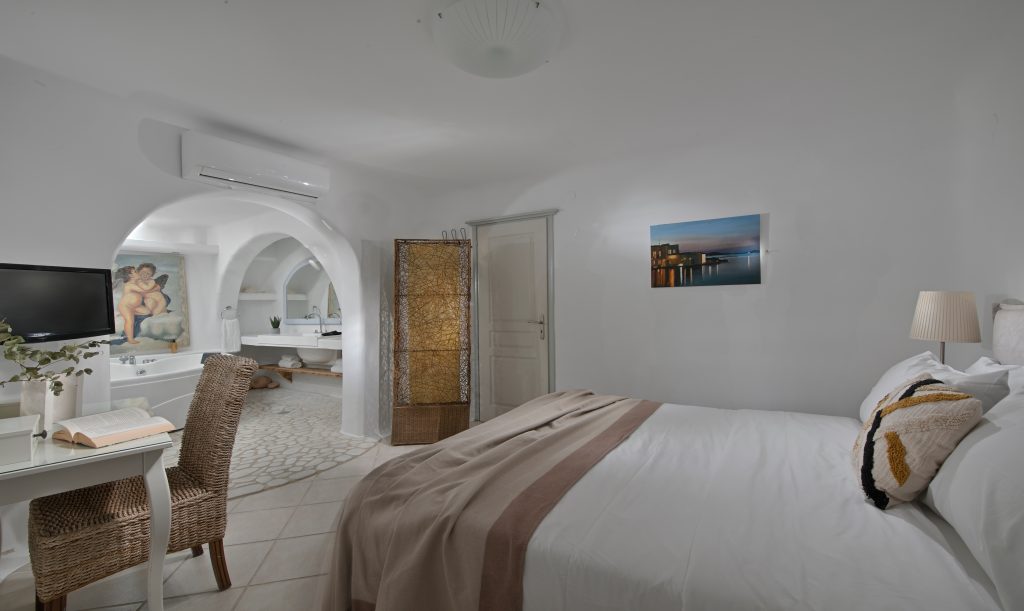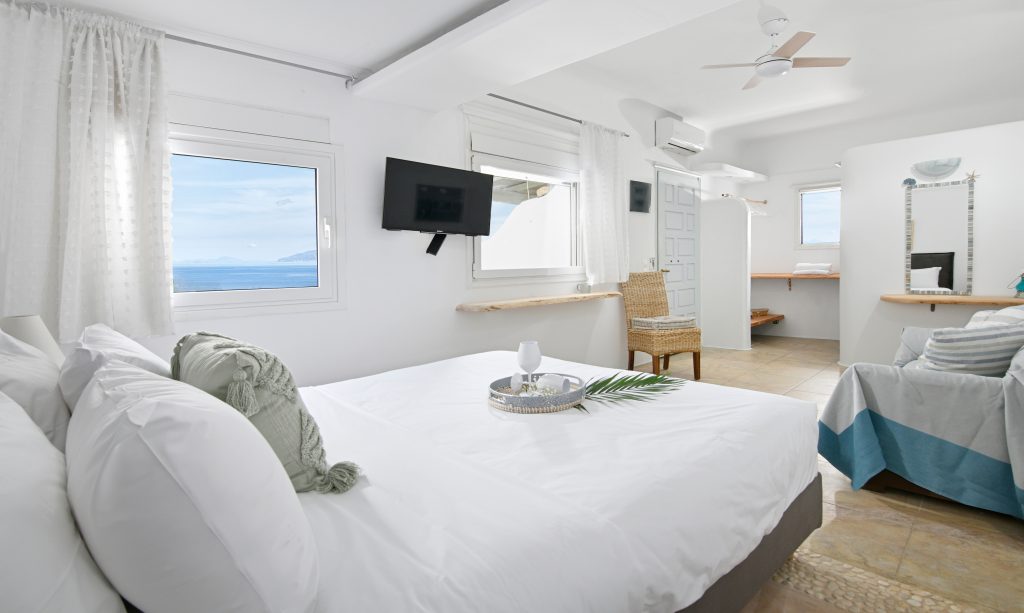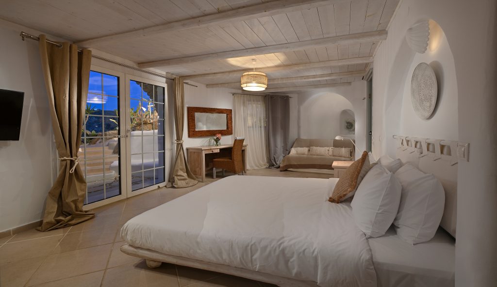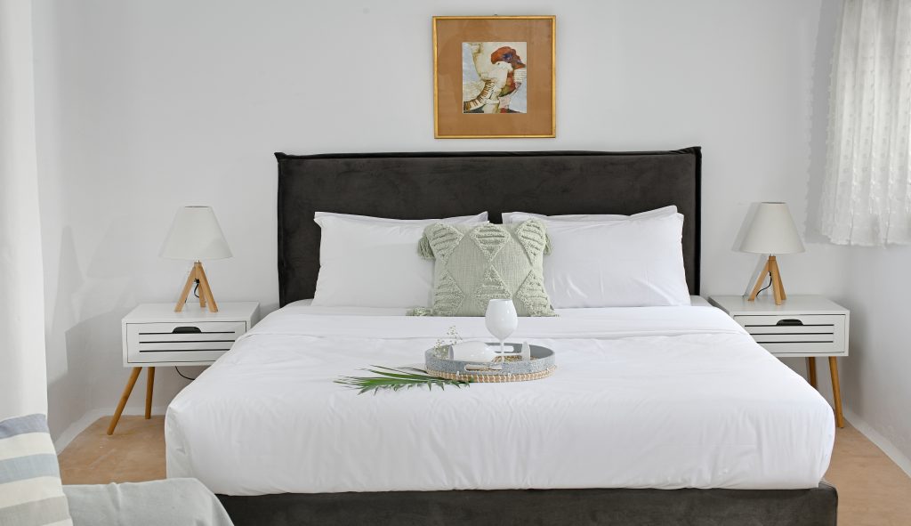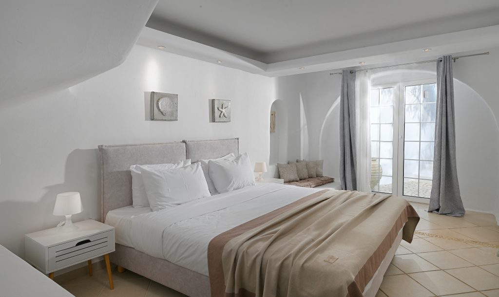 Multiple elegant bedrooms with minimalist Cycladic design
