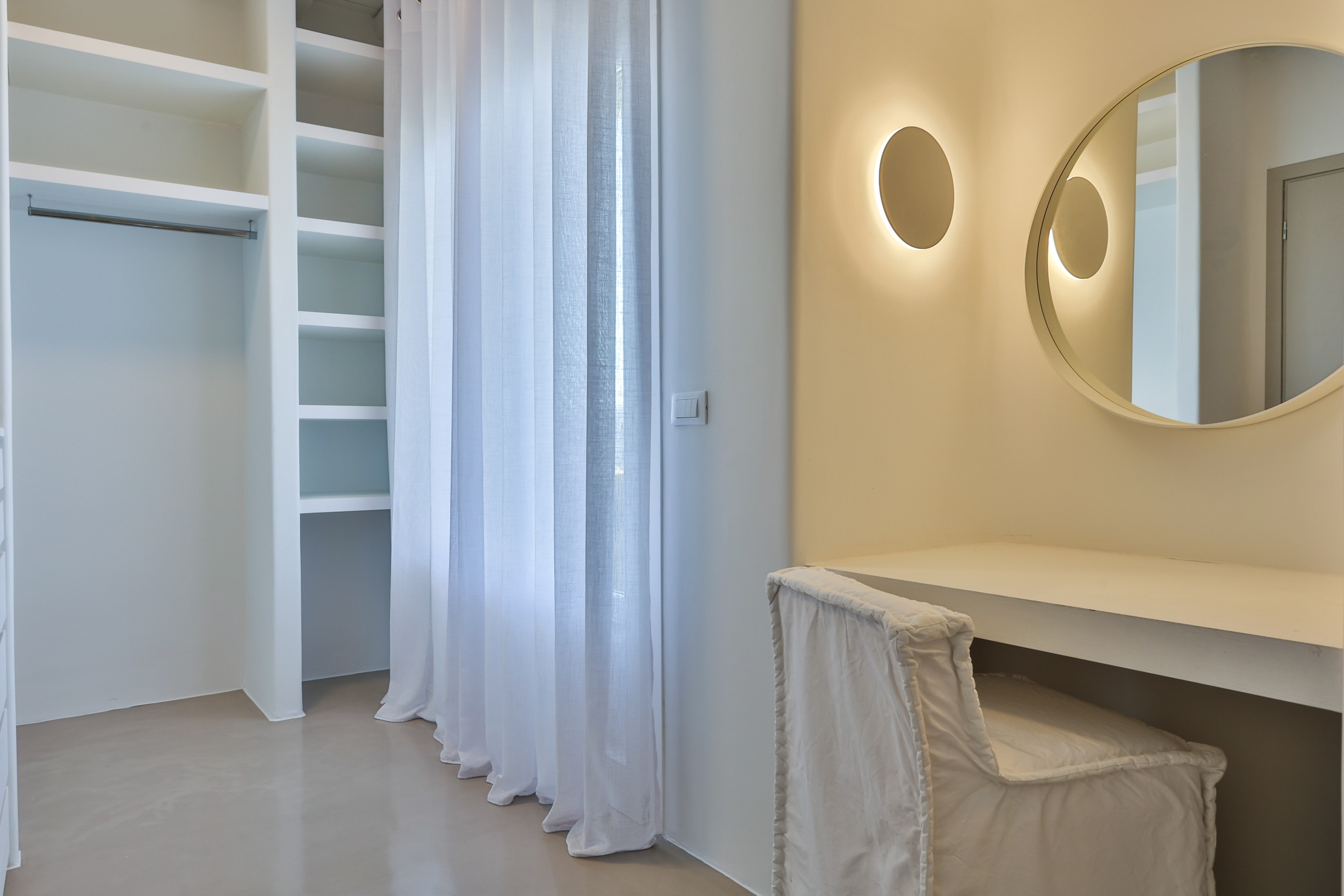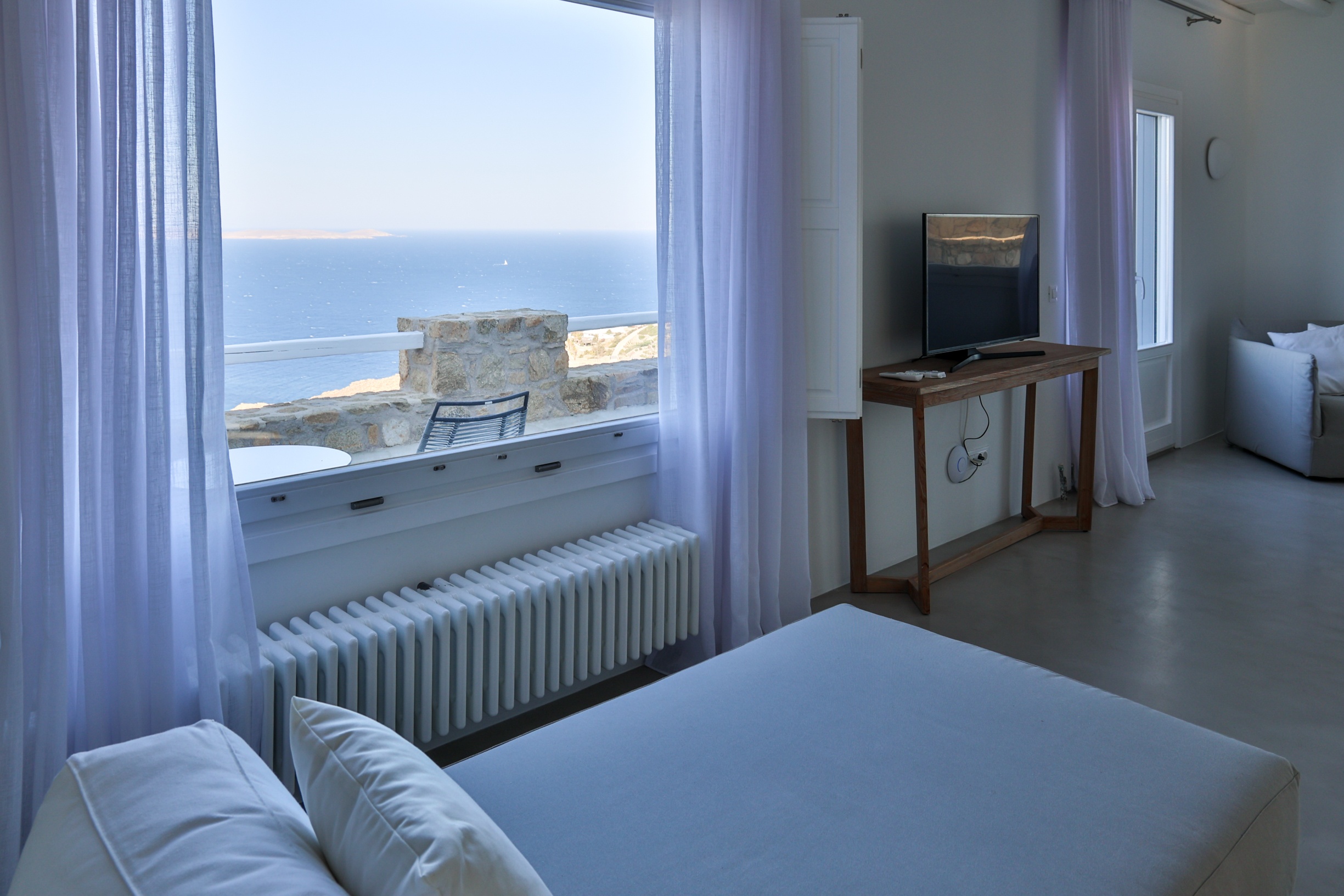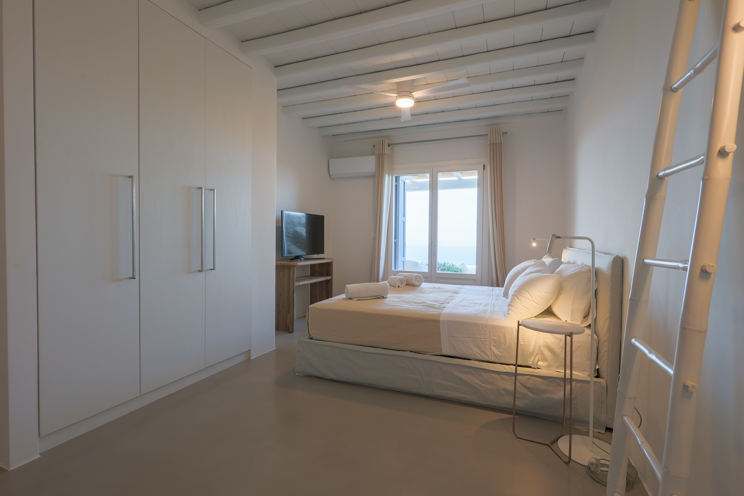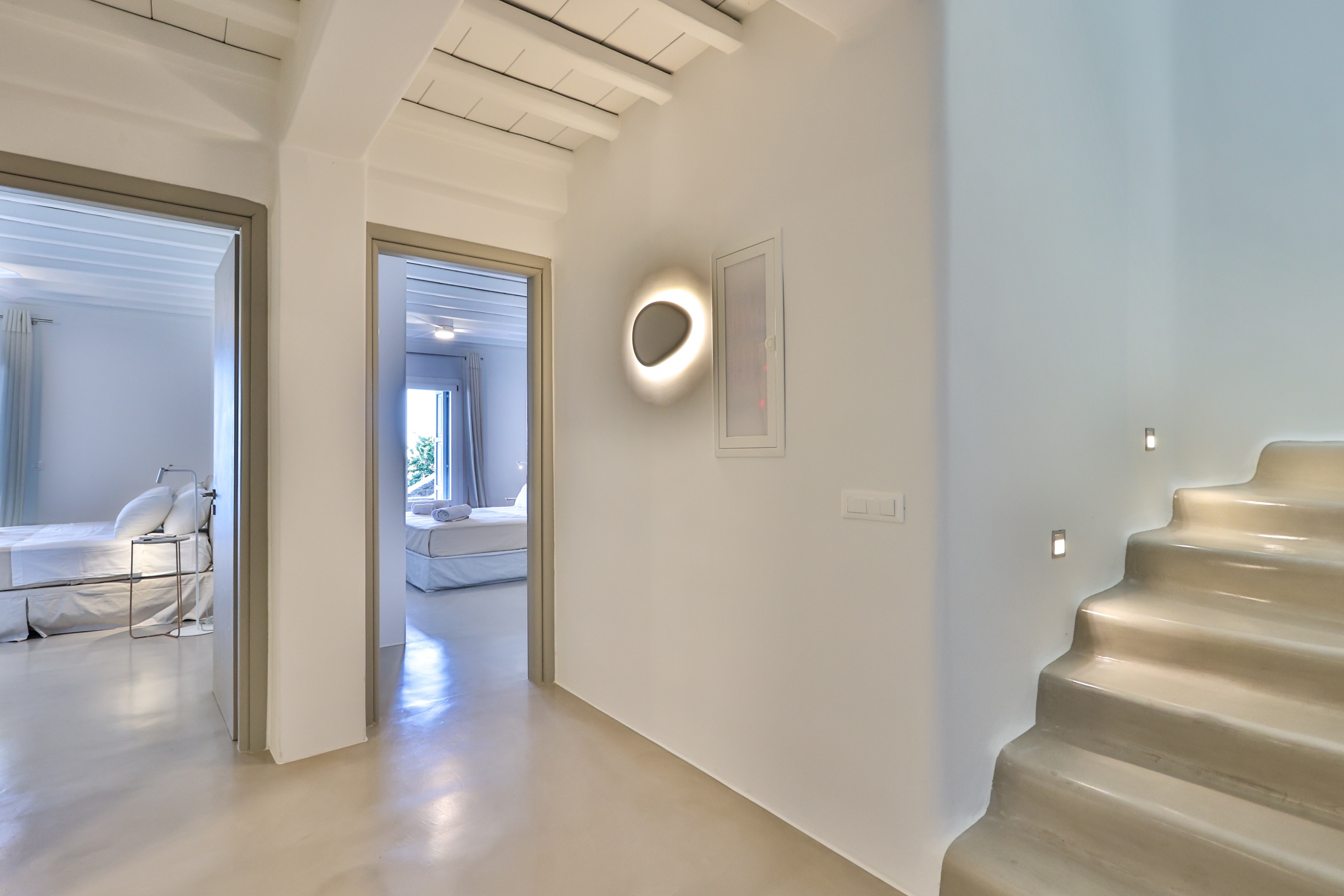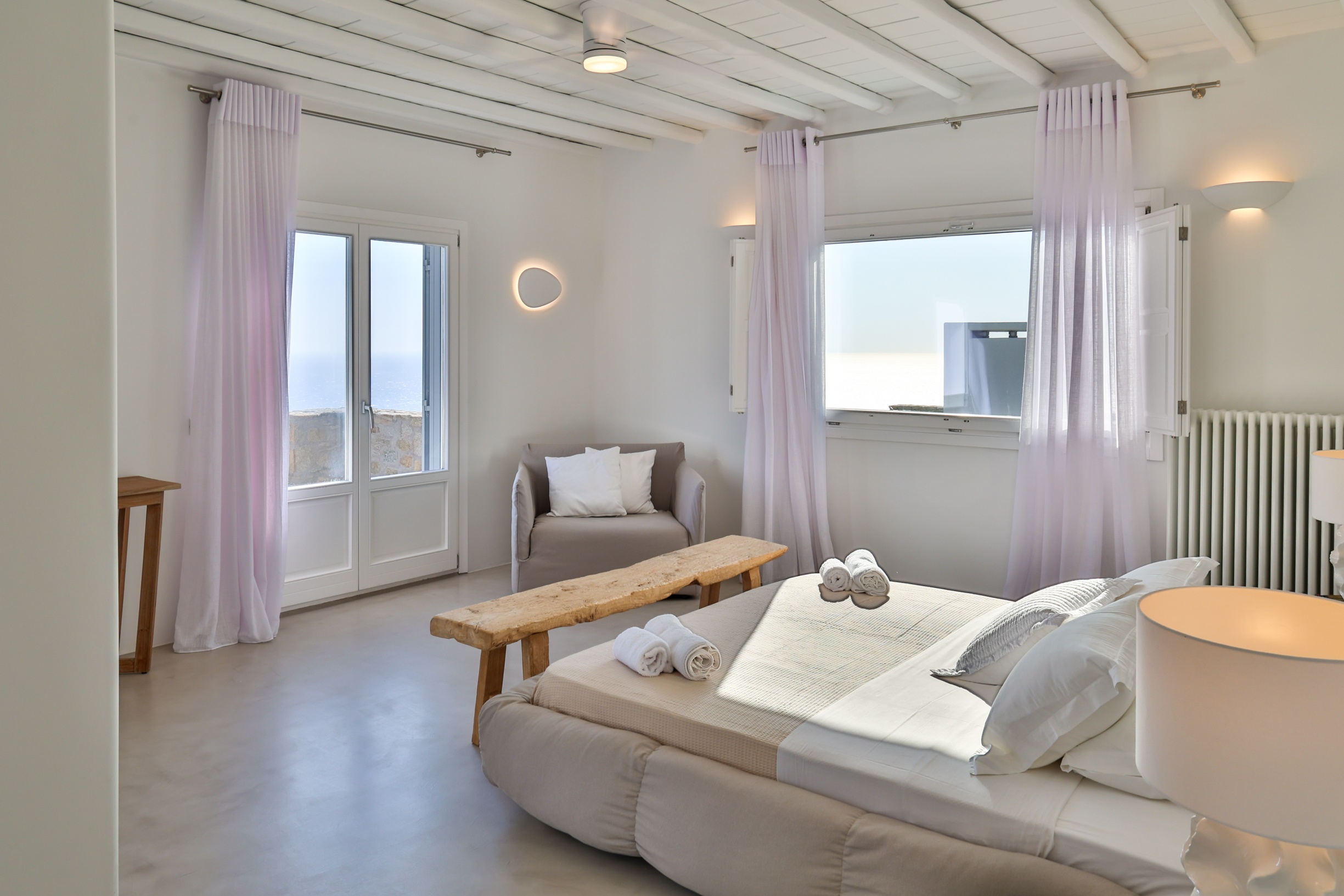 Outdoors, the villa truly comes to life. A heated swimming pool sits at the heart of the property, surrounded by expansive terraces designed for sunbathing, lounging, and alfresco dining. Guests can enjoy spectacular sunsets, unwind in the tranquil atmosphere, or host memorable gatherings under the Mykonian sky.